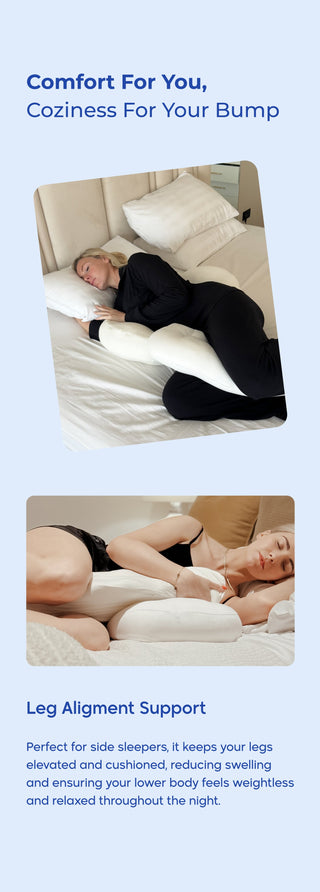 The modular design adapts to your back, belly, or legs, meeting your changing needs during pregnancy and beyond. Perfect for any sleep position, it ensures optimal alignment, reduced pressure, and personalized comfort.