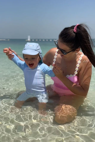 - Soft & Stretchy Fabric: Made from high-quality, stretchy material that ensures a snug and comfortable fit, allowing your baby to move freely in the water.